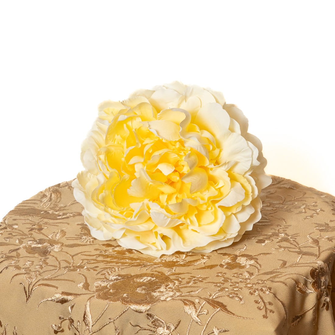 Peonía en tono amarillo hecha en tela.