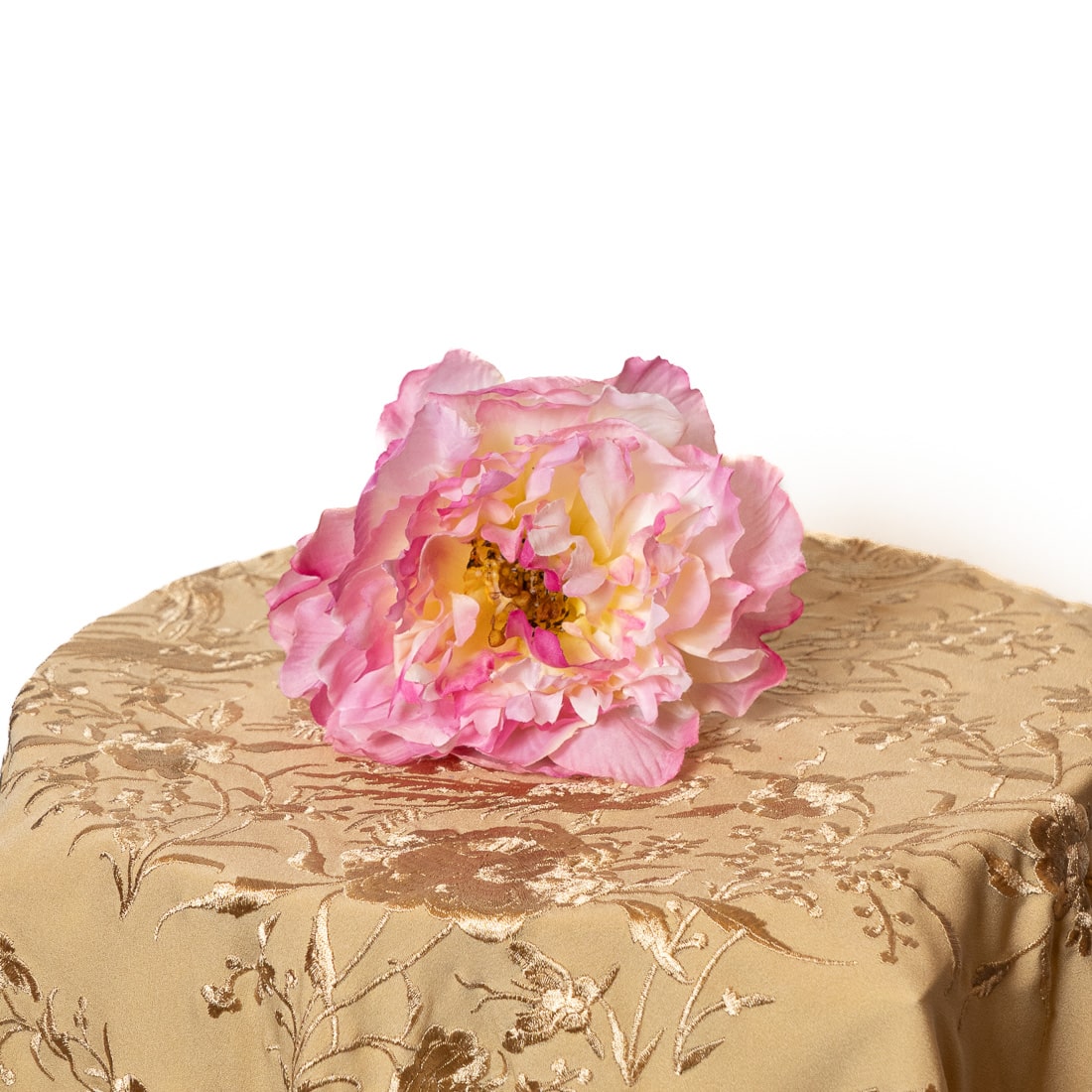 Peonía en tono fucsia con centro en crema hecha en tela.